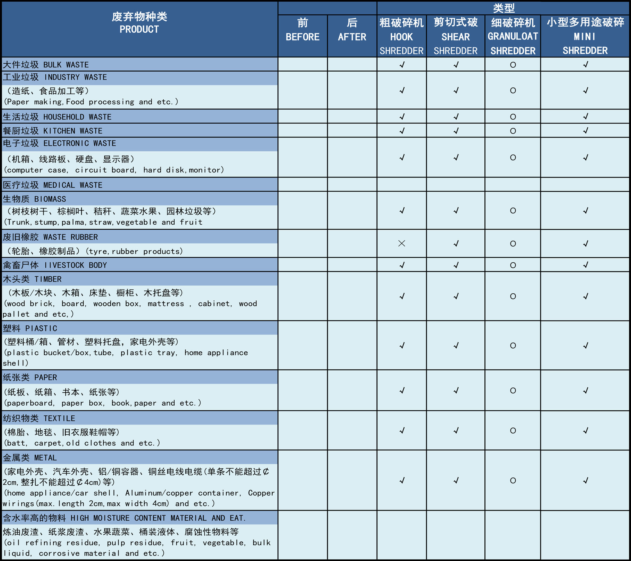 環(huán)創(chuàng)破袋機(粗破碎機),低轉(zhuǎn)速,大扭矩,用于破碎生活垃圾、大件垃圾、工業(yè)垃圾、廢舊木材等,將大件的垃圾破碎成200*250mm的碎塊,廣泛用于垃圾衍生物料生產(chǎn)和垃圾焚燒發(fā)電等領(lǐng)域的初步破碎,處理量大,維護成本低,可靠性好。整套設(shè)備包括電機、減速機、兩組刀片軸、料斗、支架、PLC控制柜等組成。它通過兩組動刀軸相向旋轉(zhuǎn),與定刀合力剪切、撕扯、擠壓來減小物料的尺寸。該機型處理量極大,每小時處理量從10噸到100噸可選。物料的碎后粒徑200*250mm。